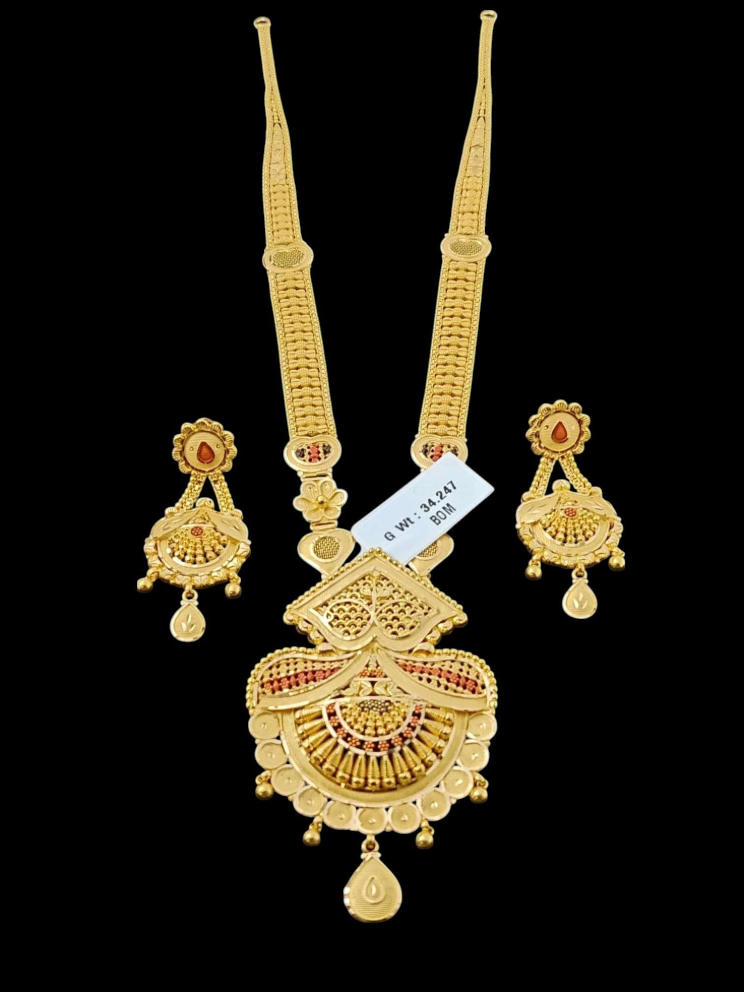 SKU: N/A Category: Long Set Tags: designer ethnic necklace, heritage temple piece, luxury bridal wear, navratri special haar, Shivjewellersparivaar Brand: shiv jewellers parivaar